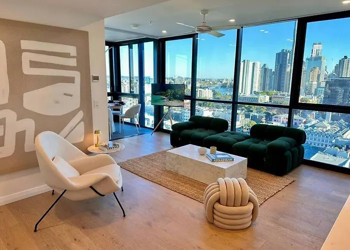 The spacious 2-bedroom Utopia City Oasis Exquisite Urban Retreat Brisbane apartment is nearly 15 minutes' walk from the heritage-listed Centenary Place Park. Offering a hot tub, a sauna, and an indoor pool, the apartment is located within reach of the Howard Smith Wharves.